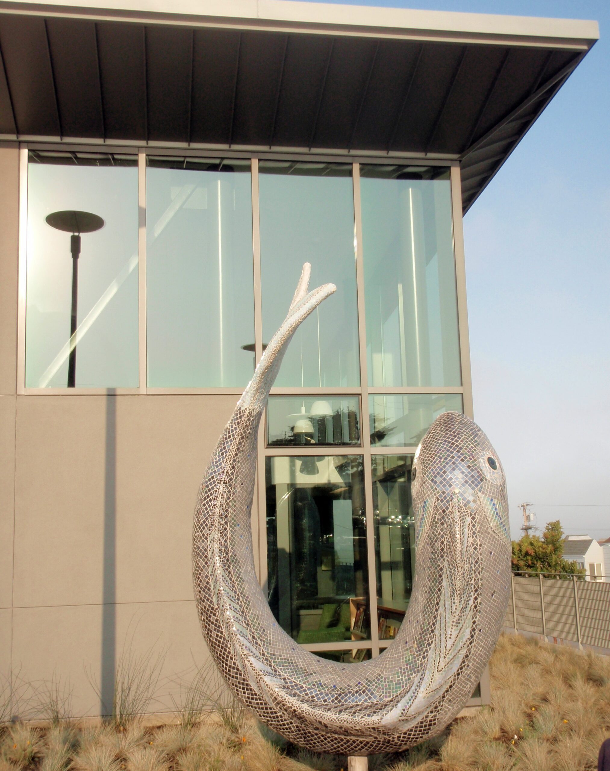 “Abundance” is a duo of large-scale, shimmering glass mosaic sculptures that are destined to become beloved symbols of San Francisco’s Ortega Branch Library. Visible from both the street and the library, the artwork beckons the public to the site; upon entering the library, visitors learn that the artwork offers insight into the neighboring Pacific Ocean ecosystem as well.