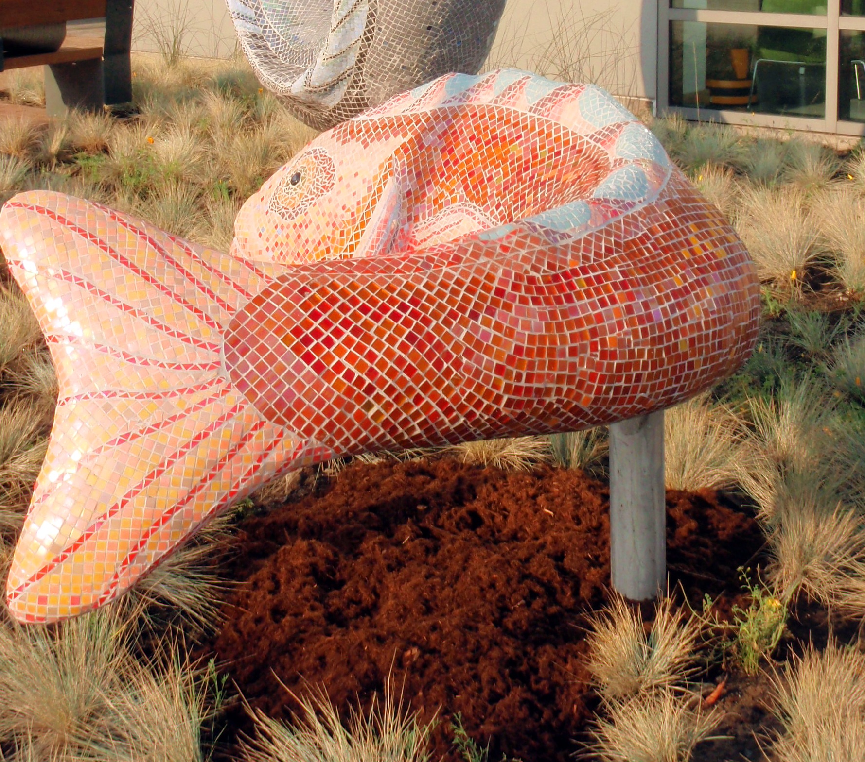 The sculptures takes as their theme the concept of abundance. Uniquely sited within view of the Pacific Ocean, the Ortega Branch Library is a source of abundant knowledge, a place where people of all ages come to learn and grow. Likewise, the nearby ocean is a wellspring of sustenance, offering an abundance of resources for both humans and animals. Both Ocean Beach landmarks – one cultural, the other natural – are vital to the community. These colorful sculptures, shimmering and iridescent, are icons of the abundance that lies both in the library and in the ocean beyond.