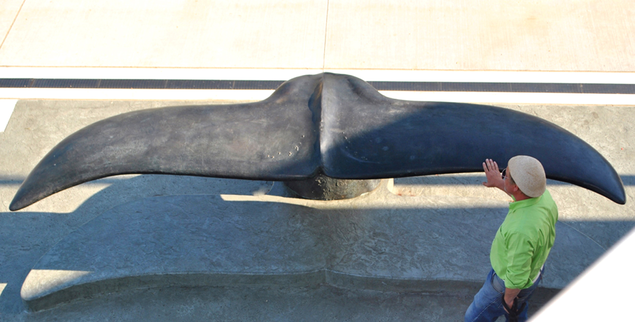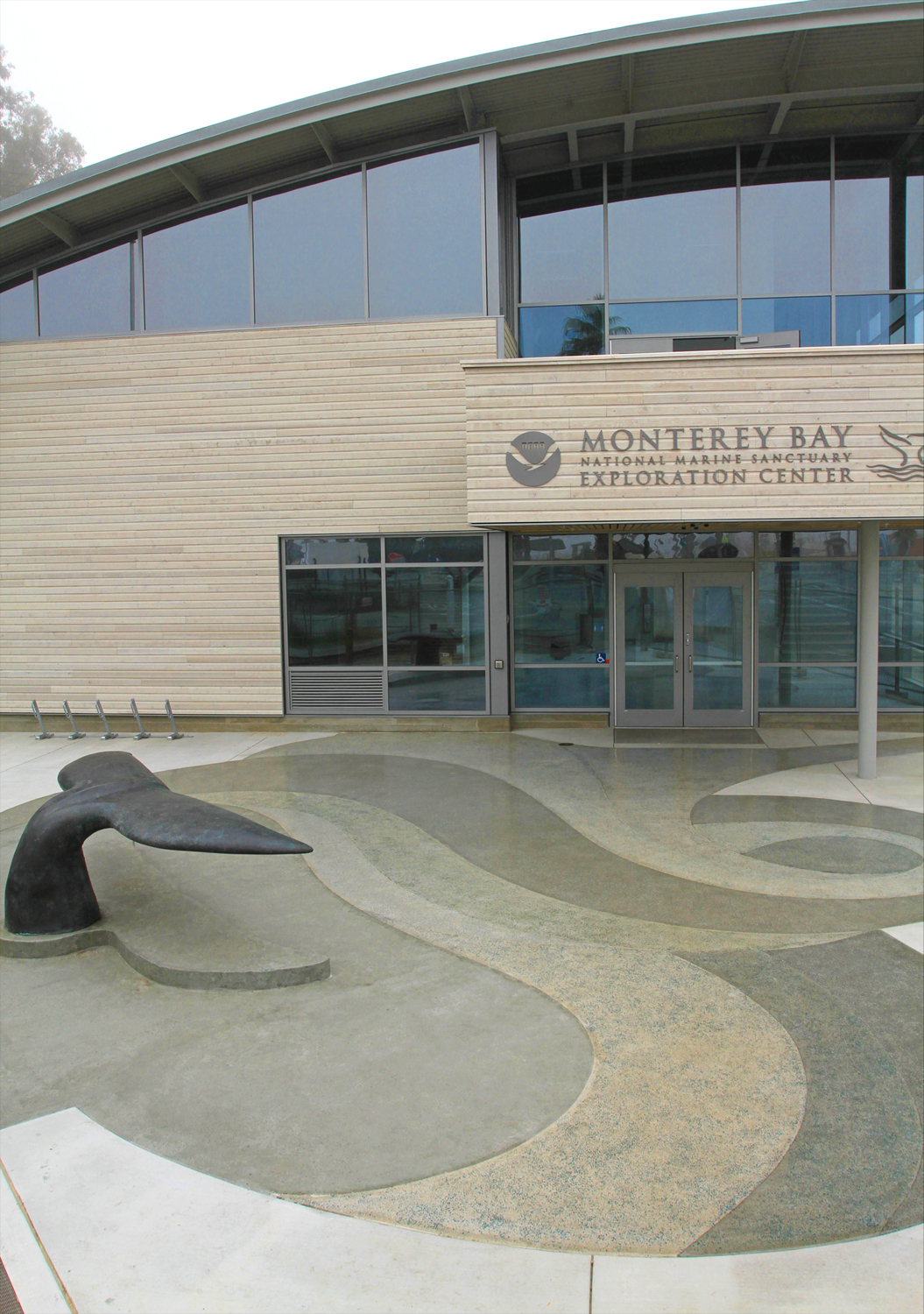 Designed as an homage to migrating whales along the California Coast, Fluke is an iconic sculpture in cast bronze at the entry to the NOAA Marine Sanctuary Exploration Center in Santa Cruz. The sculpture invites interaction with the public, evoking the feeling of an encounter in the wild with charismatic megafauna. To heighten the sense of encounter, Wowhaus also designed the pattern in the entryway’s cast concrete hardscape; undulating waveforms sparkle with recycled glass aggregate in sandblasted, pigmented concrete. The sculpture establishes a visual identity for the Center, reinforcing its goal of environmental awareness and conservation. Fluke’s patina will continually evolve with exposure to the saline air of Santa Cruz and the frequent touch of people visiting the Center.
