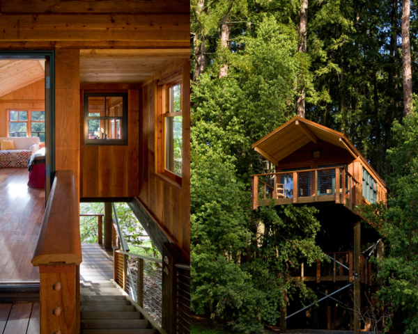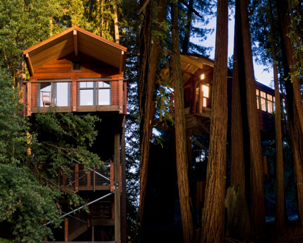 House of Tree is the latest in Wowhaus’ series of architectural experiments in high function, low-impact construction, and minimalist living. This ‘treehouse on stilts’ is fully permitted as a free-standing observation tower, a vertical respite whose helical-anchor foundation protects the root system of the coast redwood trees overhead. Lit with kerosene lanterns and serviced by an outhouse at the base of the tree, House of Tree is completely off the grid.